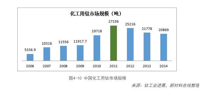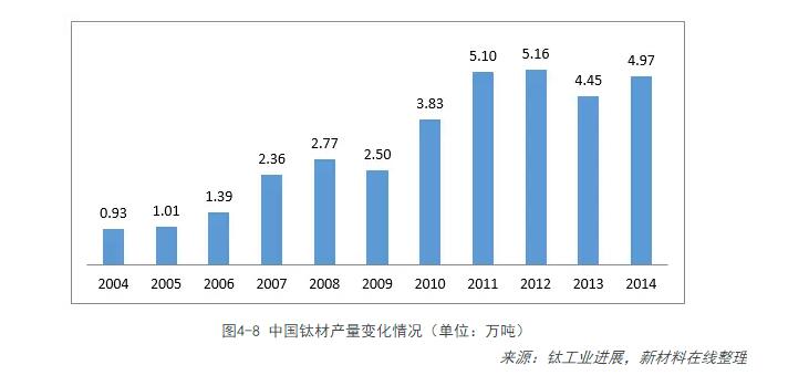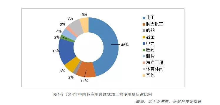 根據鈦鋯鉿分會(huì )統計的我國28家鈦材生產(chǎn)企業(yè),28家企業(yè)2014年共生產(chǎn)鈦加工材49660噸,與2013年相比增長(cháng)了11.7%。其中,鈦材在化工領(lǐng)域中用量最大,占到46%,其次為電力、航空航天、體育休閑等。