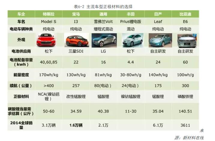 2、主流車(chē)型正極材料的選擇