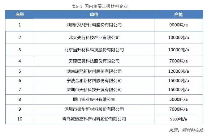 4、主要鋰離子正極材料企業(yè)情況