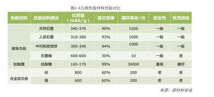 2、幾種負極材料性能對比
