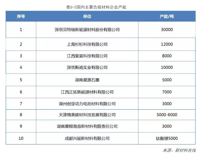 5、國內主要負極材料企業(yè)產(chǎn)能