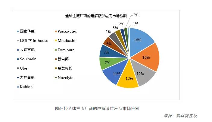 2、全球主流廠(chǎng)商的電解液供應商市場(chǎng)份額