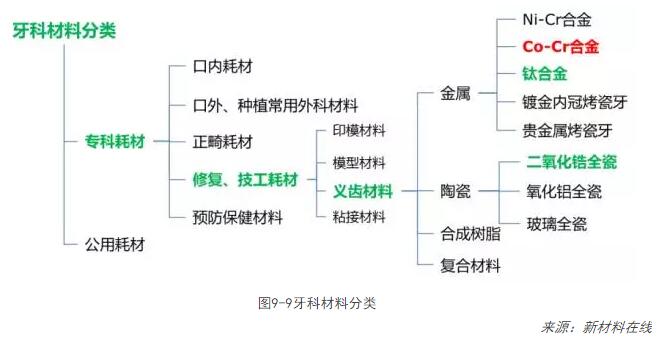 鈦及鈦合金、不銹鋼、鈷鉻合金、丙烯酸類(lèi)樹(shù)脂、硅橡膠、生物陶瓷、復合材料
