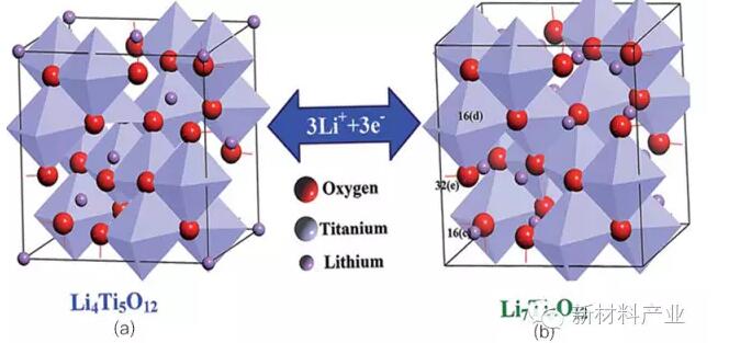 日本東芝批量生產(chǎn)以“SCiB”為品牌的鈦酸鋰電池。其中3.2 Ah、10 Ah及20 Ah鋁殼方形電池主要用于電動(dòng)摩托、電動(dòng)汽車(chē)及汽車(chē)啟停電池。SCiB電池有著(zhù)快速充電和長(cháng)壽命的優(yōu)勢,10 min即可充電90%以上,反復充放電3 000次電量容量衰減不足10%,已經(jīng)批量應用于“EV--neo”電動(dòng)摩托車(chē)上。在儲能方面,東芝借日本新陽(yáng)光計劃之東風(fēng)正在將鈦酸鋰電池應用到大規模儲能電站及家庭儲能系統。另一家日本企業(yè)村田已開(kāi)發(fā)了采用5V鎳錳酸鋰為正極的新型鈦酸鋰電池。其電壓差為3.2 V,能量密度可達到130 Wh/kg,超過(guò)了目前磷酸鐵鋰電池的水平。 國內在鈦酸鋰電池生產(chǎn)方面已有多家,如湖州微宏、河北銀隆、天津市捷威動(dòng)力工業(yè)有限公司(簡(jiǎn)稱(chēng)“天津捷威”)、四川興能、中信國安盟固利電源技術(shù)有限公司(簡(jiǎn)稱(chēng)“中信國安盟固利”)、湖南杉杉及安徽和深圳周邊的多家規模較小的鈦酸鋰電池生產(chǎn)廠(chǎng)家。湖州微宏自2006年成立以來(lái)一直致力于鈦酸鋰技術(shù)開(kāi)發(fā)。公司對其鈦酸鋰電池生產(chǎn)需要的鈦酸鋰材料、隔膜、電解液以及正極材料進(jìn)行了垂直整合。近年來(lái)為了適應市場(chǎng)需求,湖州微宏具備了日產(chǎn)8萬(wàn)只10 Ah的鈦酸鋰電池產(chǎn)品的產(chǎn)能以及2倍于的鈦酸鋰電池的多元正極鋰電池產(chǎn)品的產(chǎn)能。截至2014年底,湖州微宏的10 min快速充電電池系統已裝備了超過(guò)3 000輛混合動(dòng)力為主的電動(dòng)大巴,主要銷(xiāo)往英國、荷蘭及中國重慶等地。在儲能市場(chǎng)方面,湖州微宏分別在美國的佛蒙特州及中國重慶安裝了用于電網(wǎng)調頻及電網(wǎng)需求管理的LpTOTM鈦酸鋰電池儲能系統。 河北銀隆目前量產(chǎn)的鈦酸鋰電池產(chǎn)品有20 Ah和65 Ah軟包電池以及25 Ah、30 Ah和55 Ah圓柱電池,性能指標已達到美國奧鈦生產(chǎn)的鈦酸鋰電池。電池100% DOD的循環(huán)次數超過(guò)16 000次,10 % DOD則達到160 萬(wàn)次。這幾款電池均已通過(guò)北方汽車(chē)質(zhì)量監督檢驗鑒定試驗所(201所)的第3方檢測。在應用方面,銀隆新型純電動(dòng)公交車(chē)使用了圓柱形、壽命長(cháng)、充放電快的鈦酸鋰電池,續航里程可達30~80 km,快速充電只需6~10 min,也可用夜間谷電慢充30~60 min充滿(mǎn)。該系列車(chē)型已經(jīng)成功地投放于廣東湛江、河北邯鄲、石家莊等地公交系統。銀隆專(zhuān)為北京公交設計開(kāi)發(fā)的仿古鐺鐺車(chē)于2014年9月投入商業(yè)化運營(yíng)。該車(chē)還被指定為北京APEC會(huì )議的官方指定用車(chē)。在儲能市場(chǎng),銀隆分別與國家電網(wǎng)和南方電網(wǎng)合作承擔了儲能方面的863國家項目,為張北風(fēng)光儲輸示范站和深圳寶清電池儲能站分別提供了2個(gè)2 MWh和一個(gè)600 kWh鈦酸鋰系統的部分模塊、電池箱設計以及系統解決方案。 天津捷威得到了美國奧鈦的鈦酸鋰電池生產(chǎn)技術(shù)轉讓?zhuān)⒔Y合自己多年來(lái)在聚合物軟包動(dòng)力電池生產(chǎn)方面的技術(shù)積累而獨居特色。公司成功地突破了脹氣難題,已具備批量生產(chǎn)大規格單體鈦酸鋰電池的技術(shù)及能力,電池容量達到60 Ah,累計出貨量為2 000萬(wàn)Ah。該電池可以承受10 C以上連續充放電,壽命達到2萬(wàn)次以上,溫度范圍為-40~60℃。主要應用于快充大巴和調頻的儲能電站。 四川興能采用改性鈦酸鋰為負極量產(chǎn)了以20 Ah LTO/NCM軟包電池產(chǎn)品以及錳泰龍系列新型鈦酸鋰電池產(chǎn)品。其在10 C的倍率充電與放電分別為:90%與73%。其5 C充放電經(jīng)上萬(wàn)次循環(huán)容量未見(jiàn)明顯衰減。除此之外,天津大學(xué)推出了400Ah磷LFP/LTO圓柱形鋰離子電池,中信國安盟固利、湖南杉杉及安徽天康等公司均有小批量的鈦酸鋰電池產(chǎn)品的生產(chǎn)。 純相Li4Ti5O12晶體為白色固體具有面心立方尖晶石結構,其常用化合物分子式為AM2O4,空間群:Fd3m,晶胞參數a為0.836 nm。在一個(gè)晶胞中,所有O2-都占據32e的位置,占總數3/4的Li+位于8a的四配位四面體的中心,占總數1/4的Li+和所有的Ti4+共享16d的六配位八面體的位置。因此,其超結構式可表示為 [Li3]8a[Li1Ti5]16d[O12]32e,,或Li4Ti5O12。在充電態(tài)當鋰離子嵌入時(shí)(見(jiàn)圖1),嵌入的3個(gè)鋰離子將匯合原來(lái)8a四面體位置的鋰一起遷移到原先空缺的16c六配位八面體位,即[Li6]16c[Li1Ti5]16d[O12]32e,或Li7Ti5O12 。一個(gè)有趣的現象是其晶胞體積在3個(gè)鋰離子的嵌入前后幾乎沒(méi)有變化,a 值從 0.836 nm 增加到 0.837 nm。因此Li4Ti5O12這種被稱(chēng)為“零應變”負極材料的循環(huán)壽命是超長(cháng)的。根據每個(gè)超結構可嵌入3個(gè)鋰離子來(lái)計算,Li4Ti5O12的理論可逆比容量為 175 mAh·g-1。由于Li4Ti5O12嵌鋰電位比金屬Li的電位要高出1.55V 。所以在負極上形成鋰枝晶幾乎無(wú)可能,從而避免了大部分鋰離子電池在負極上形成鋰枝晶導致內部短路的安全隱患。(a)圖為在放電態(tài)的鈦酸鋰晶胞,其中小球為L(cháng)i原子在8a四面體位;(b)圖為在充電態(tài)的鈦酸鋰晶胞,其中Li在16c八面體位。圖中大球形為氧原子,中球為鈦原子位于每個(gè)八面體位的中心。 Li4Ti5O12的制備方法通常有固相法、水熱法、溶膠凝膠法、熔鹽法等方法。